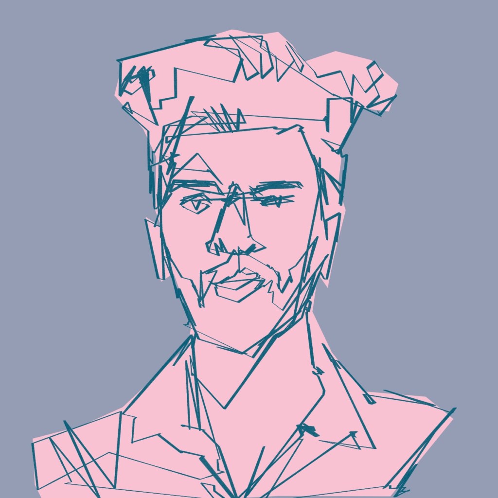 When I finished the line, I paused and the Procreate software is programmed to snap into a straight-edged shape, or a polyline. The result transformed the portrait algorithmically into a jagged, warped version of my line work.