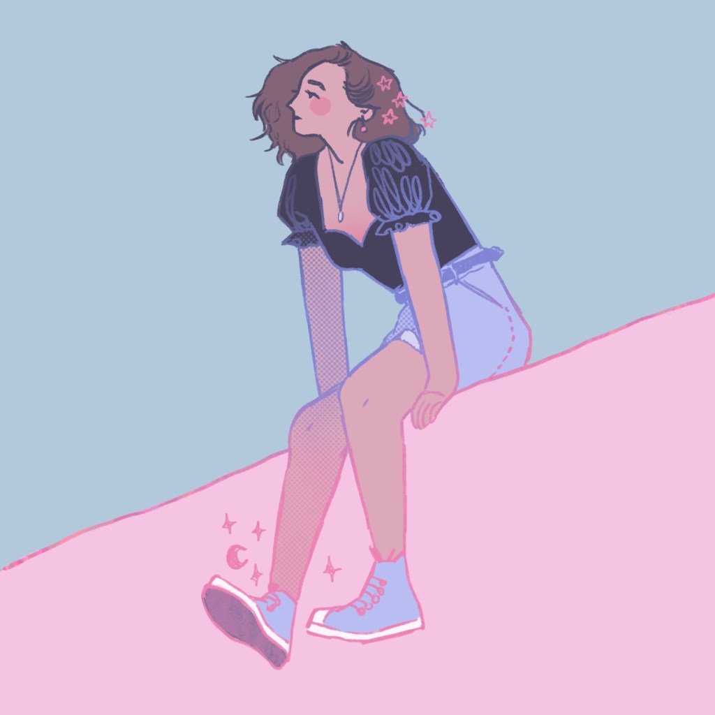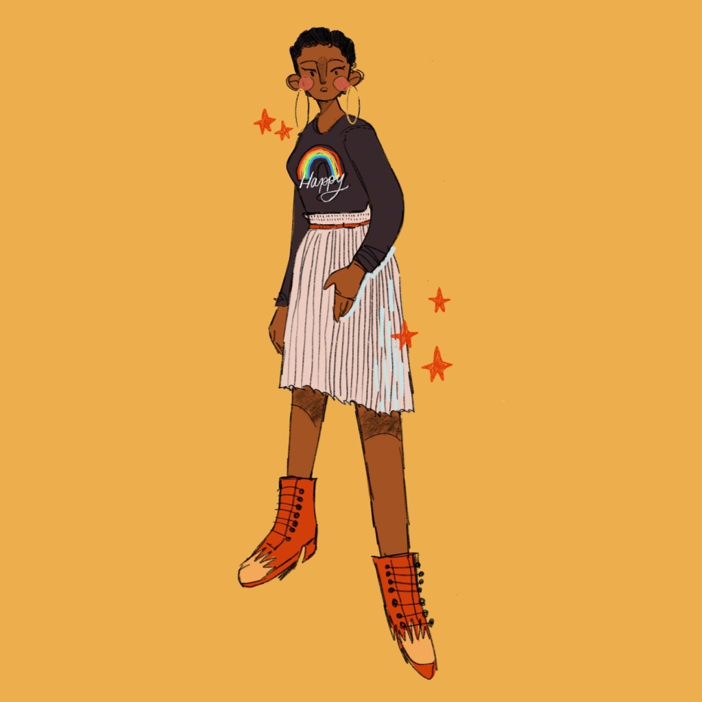 My process is similar with each of the illustrations. I find a reference (or references) for the clothes, hair and possibly pose of each girl. I upload them all into Procreate and create a sketch with however much of my own creative license I want as well.