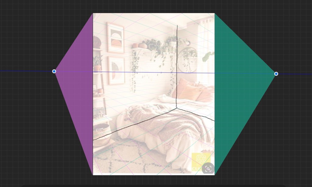 Today, I found myself practicing perspective grids. I have watched so many videos and tutorials for 2-point perspective, but have never mentally grasped it. To practice, I downloaded a photo of a room and tried to align the grid to it.