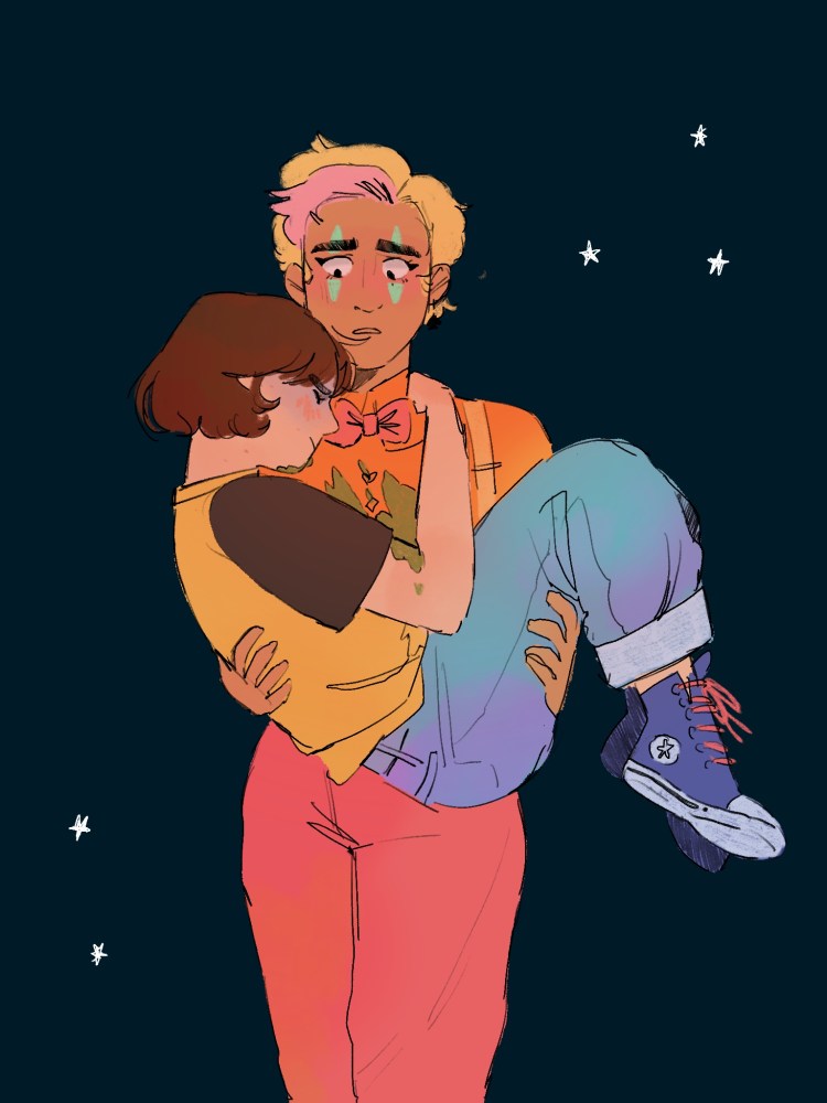 Colouring them all separately was an exercise in patience and a labour of love. I played with a LOT of transitions but I think the wipes were most effective, because in certain paused moments you can see half of the image laid over another half – and it just shows how similar their love is across each universe.