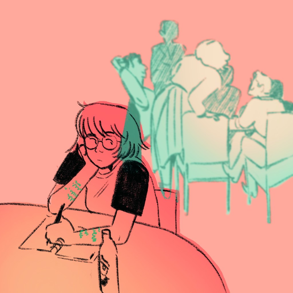 Played with effects and spacing and overlays to create a scene. Really enjoying my simple, expressive, doodly style and not feeling bad about it.