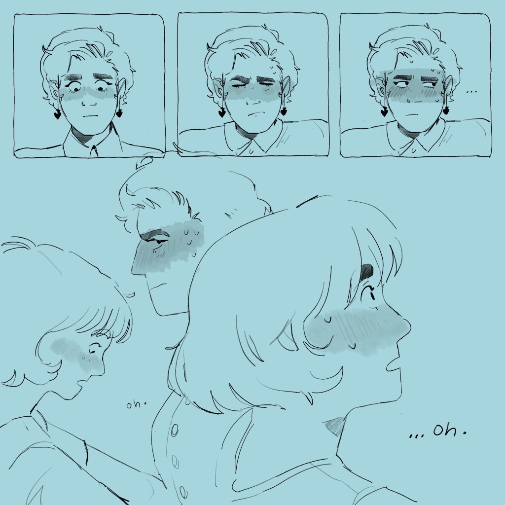 I went for the slightly overlapping images inspired by shiiocha on Instagram, who’s informal, doodly comics come together as more of a continuous experience than comics that are more boxed in. I think it worked!