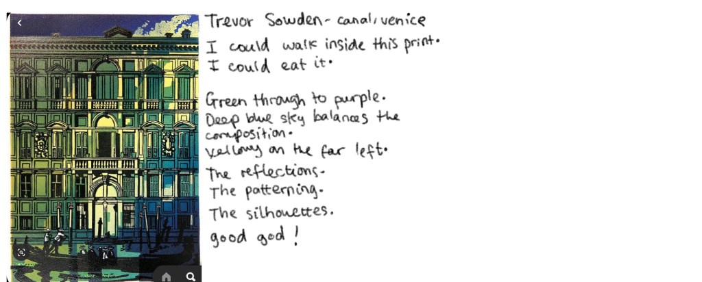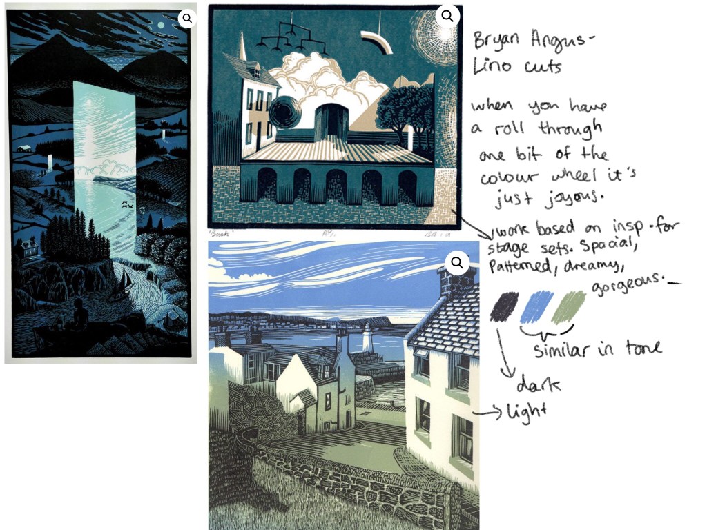 On my week off class, I took the chance to start a printmaking Pinterest board of my own. I started taking pins from Phil’s pages, then moved on to researching artists he’d mentioned on his slides throughout the weeks.