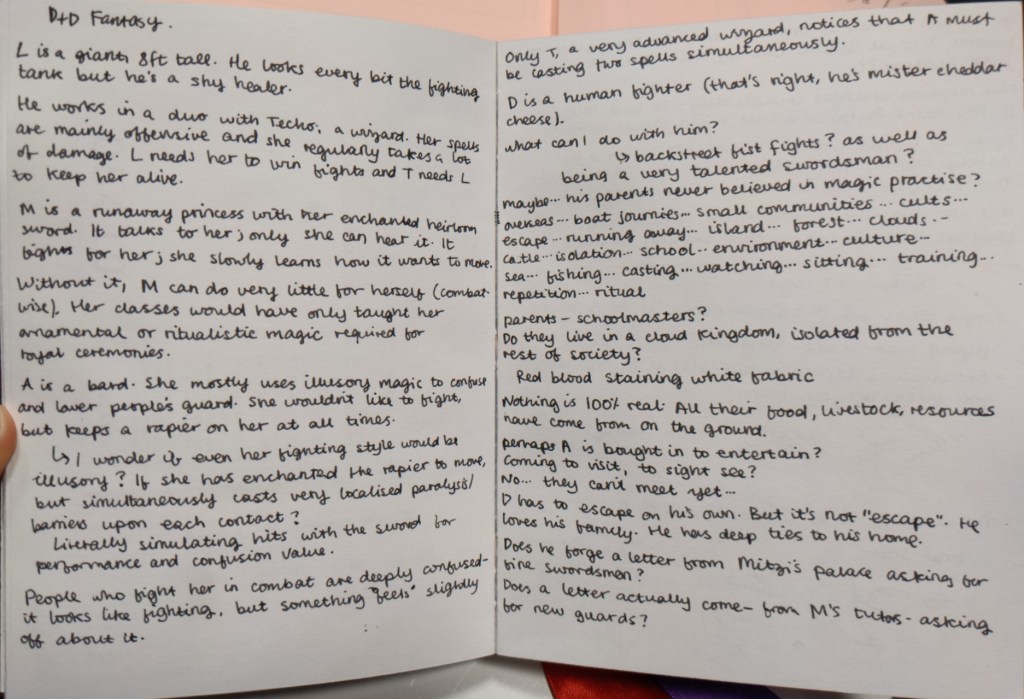 I listened to a song called Enemies to Lovers while trying to drop off to sleep and got the most vivid visual of Mitzi and Antonia having a sword fight. And Mitzi holding a sword got me thinking about that DND universe Ben designed with me this year. And then I started redesigning the DND fantasy universe, but outside of the structural and formal limitations of actual dungeons and dragons. More like… a campaign but also just a plot.