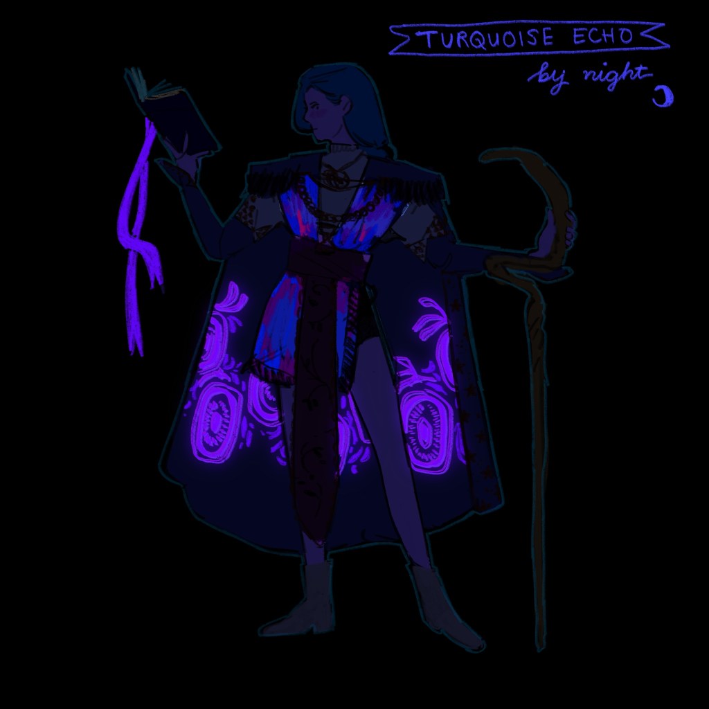 The tight waist gives us an idea of her real figure, as well as the hourglass shape mimicking the hourglass she wears around her neck as a magical charm. She’s flat chested, but the wide shoulder pads tapering in give the illusion of an hourglass. She’s got that short skirt and shorts because of all my characters, she’s the one out on the pull most often. She has to think practically about these things!