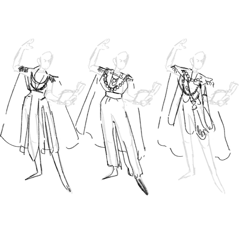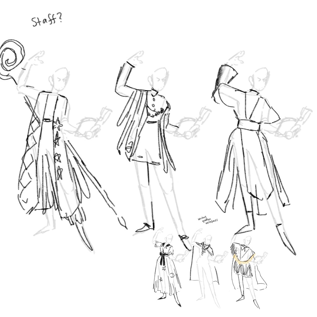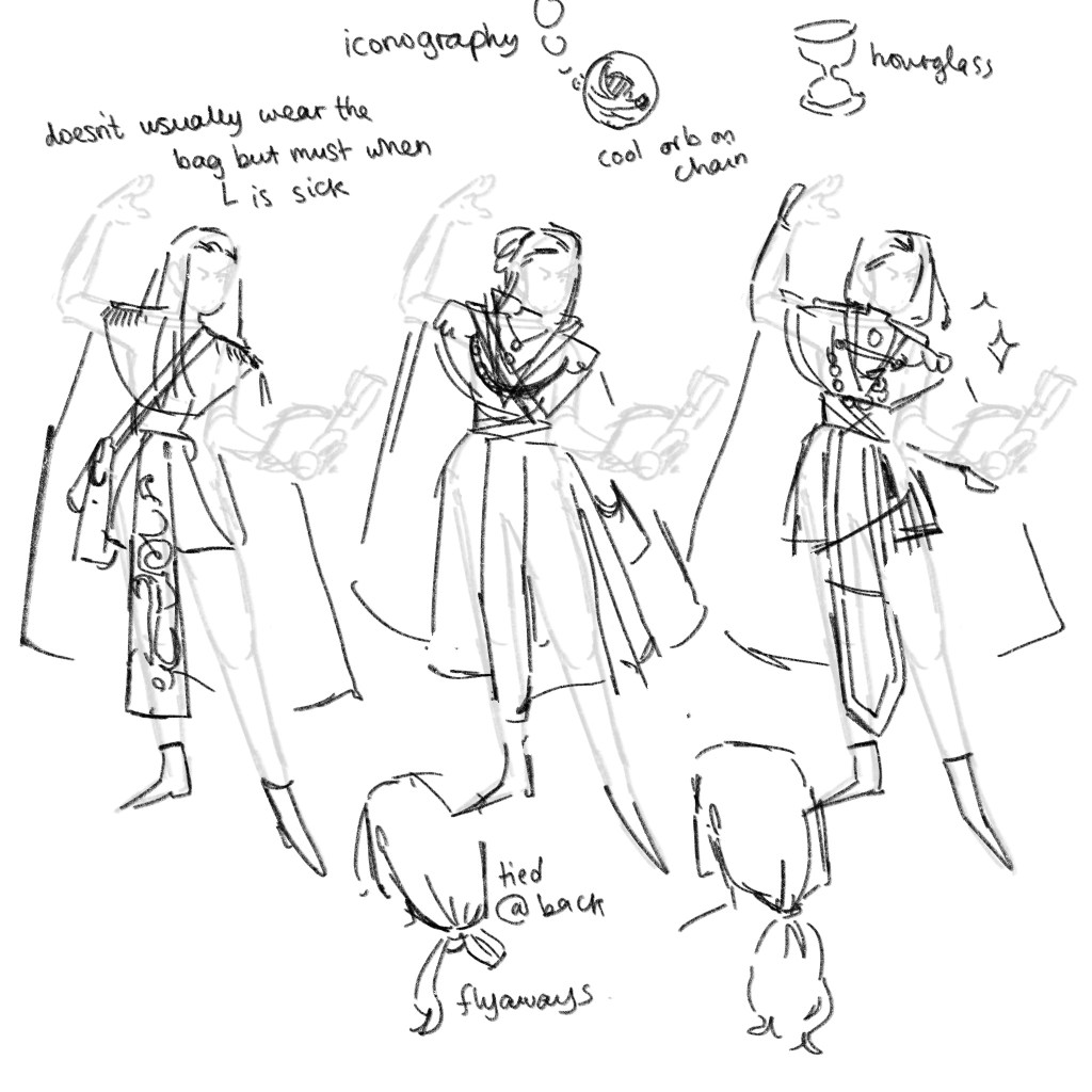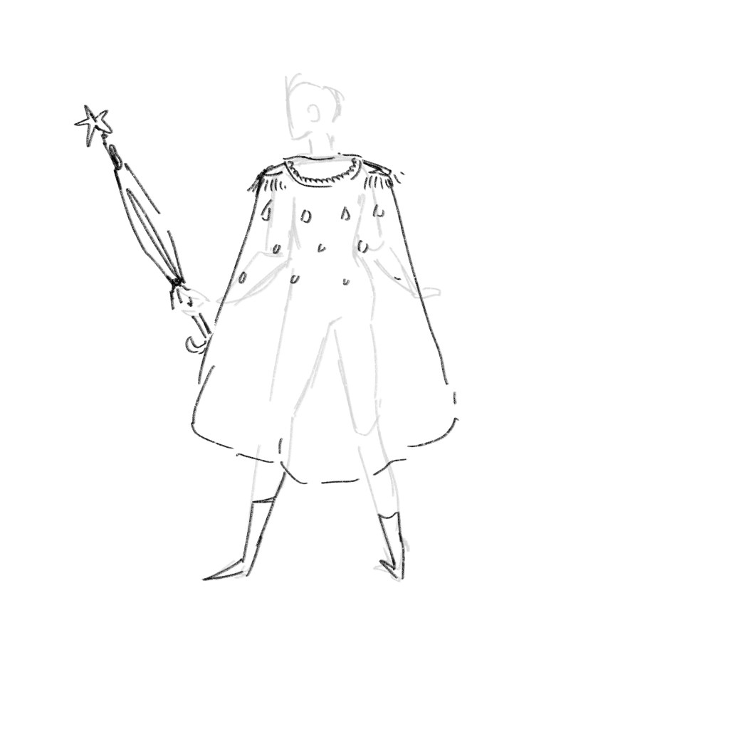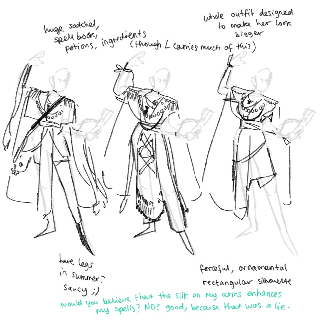 I realised at this point that I had this specific cape in mind, so worked from the back fro a moment to get my shapes down. All of the previous designs could be said to be successful, but I needed my shape language to work for this character. Heavy on the rectangles, giving her a sense of presence. This is particularly important because Techo is about four foot tall in this universe. You heard me right.