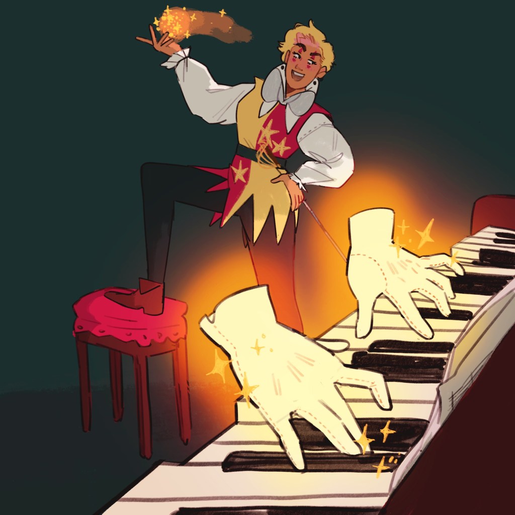 What a delight this image was to make. It’s exhilarating getting closer and closer to a point where I can make people see what I see in my head. With this AU, there’s been a big jump in quality, just like I saw over summer with the Jester AU. It needed the vampire AU and modern AU to wiggle it through another pubescent phase, obviously. The big new difference is how cinematic my pieces are, and I’m using slightly more daring composition than before. I am achieving this through thumbnailing and using lots of sources of reference, and leaning into the experimental and playful side of things.