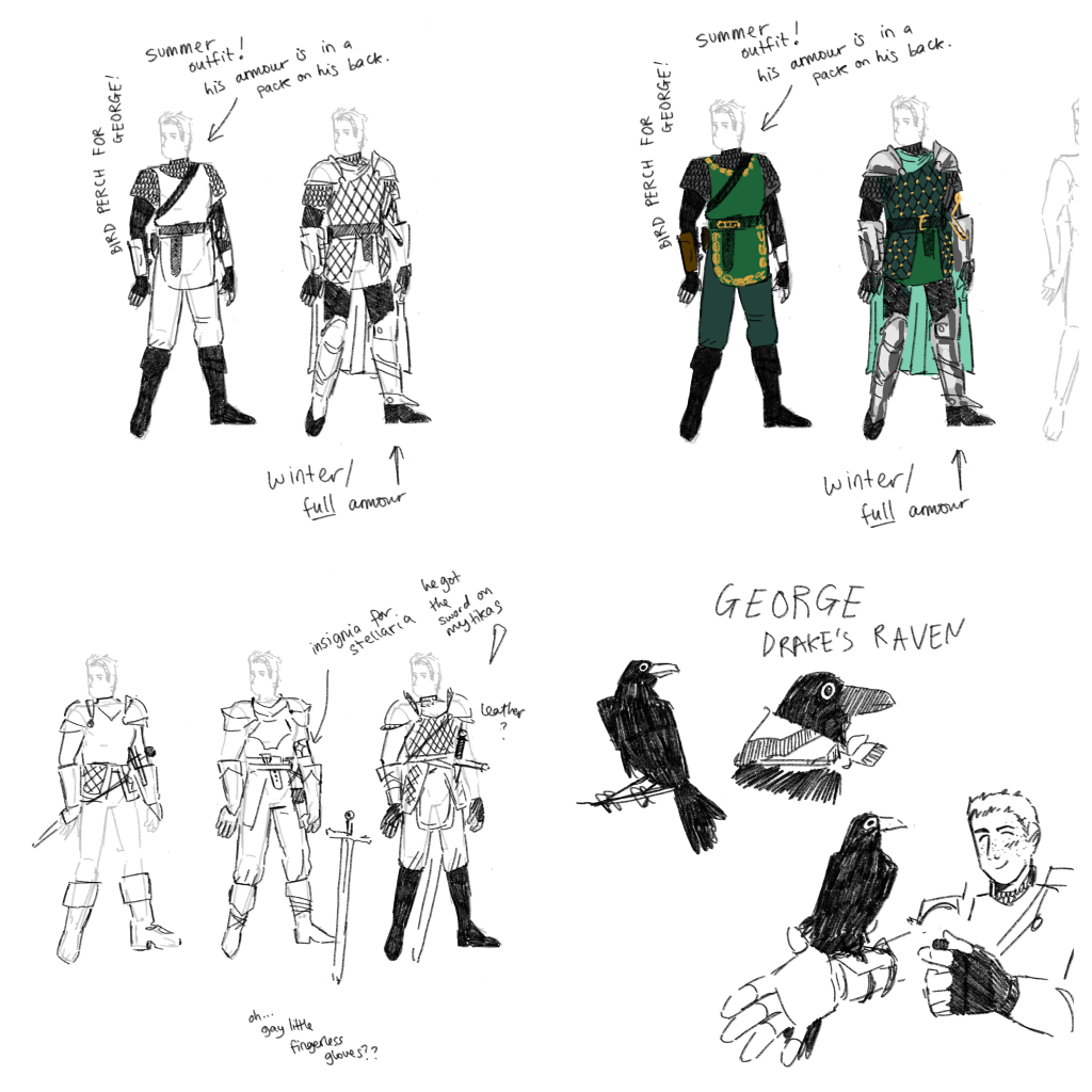 You may realise that the completion of Drake’s design (or at least, something working) means that all five characters have designs in this universe now. Which means I can start sketching up some cool scenes without limitations now!