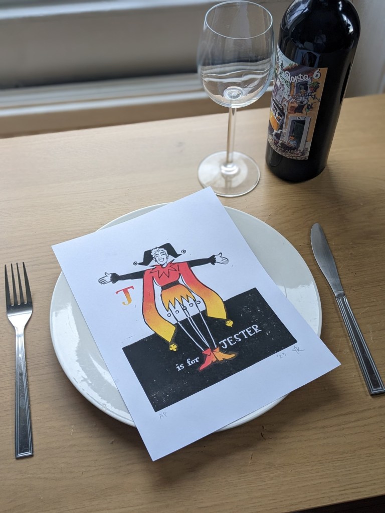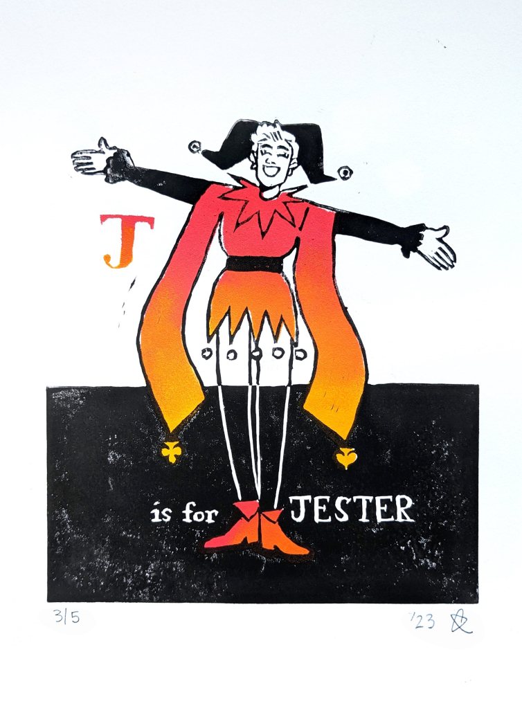 The mixture of stencil printing and lino was fun, and felt original and cool. It allowed for real control over the colour gradients using the sponge, and the payoff is that the prints are almost identical.