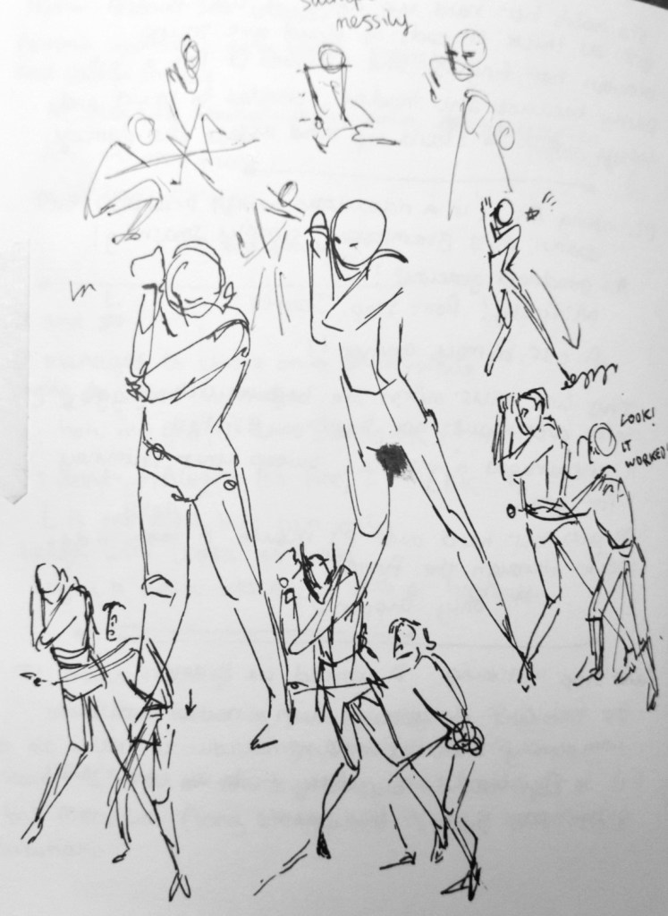 Illustration drawn after notes on the scene and before full write-up of the scene.
